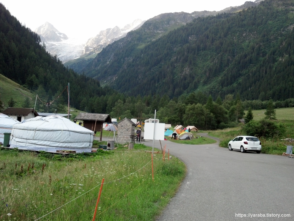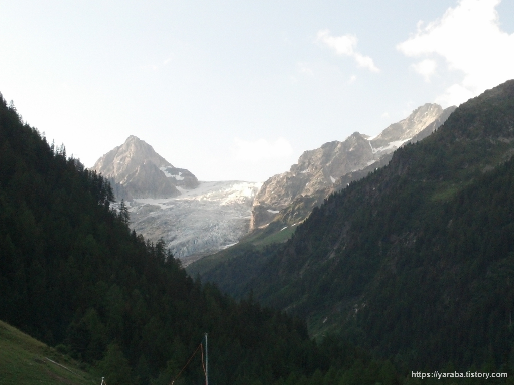 트리앙 계곡 정면으로는 베홍 빙하(Glacier des Berons)가 위압감을 뽐냅니다. 설마 저기로 가는 것 아니야? 하면서 지도를 보니 다행히 저희는 우측 계곡을 따라 올라갑니다.