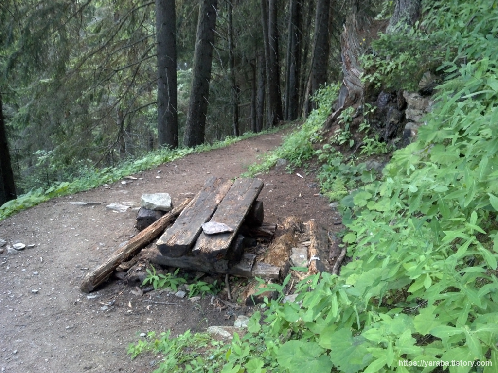 완만한 계곡길이 지나면 지그 재그 길로 1,400미터 내외에서 1,800미터 까지 400미터 내외의 고도를 쭉 올립니다. 숲길을 헉헉대는 거친 숨과 이마에 흐르는 땀으로 걸어야 합니다.