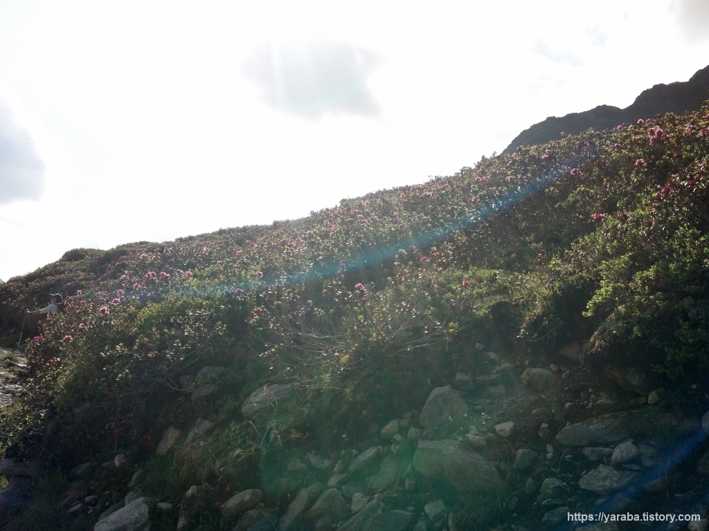아침 햇살에 취한 알펜로즈와 야생화들과 함께하는 길입니다.