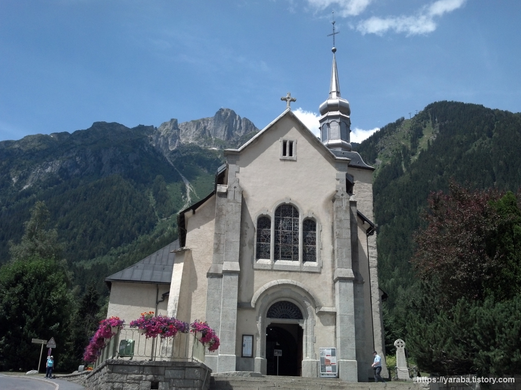 생 미셸 성당은 샤모니 형성 초기에 수도원이 있던 자리에 18세기에 세워진 성당이라고 합니다. 르 브레방에 갔다가 내려오는 길에 이곳에서 보기 힘든 장면을 목격했었지요.