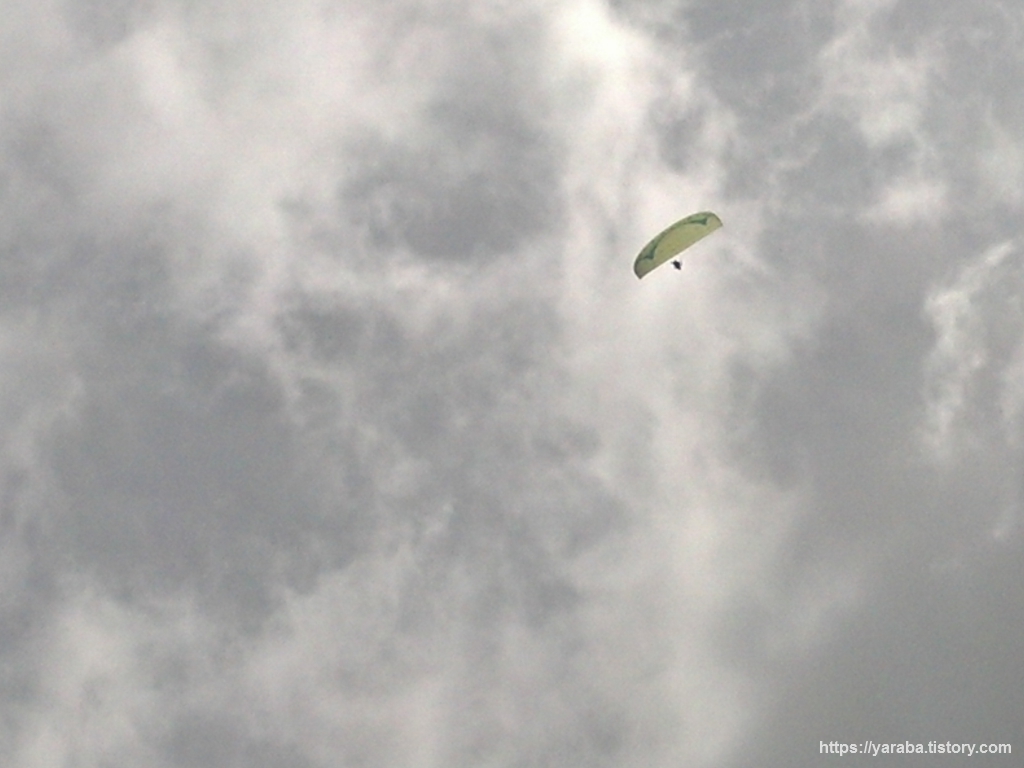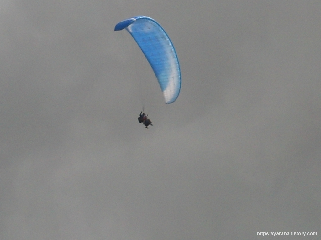 산 정상에서의 바라보는 경치도 좋았지만 그곳에서 만난 또 다른 볼거리는 패러 글라이딩이었습니다. 글라이더 조정수와 고객이 함께하는 글라이더도 있었지만, 그냥 혼자서 하늘을 나는 사람들은 2,500미터의 고도보다도 훨씬 높게 마치 몽블랑 높이까지 올라겠다는 각오 인양, 상승 기류를 타고 고도를 계속 올리더군요. 내려가는 낙하산만 보다가 새 처럼 하늘을 올라가는 것을 보니 신기했습니다. 알고보니 패러 글라이더는 프랑스의 한 산악가가 낙하산을 개조해 만든 것이었습니다. 산을 올라 정상에 오르면 늘 생각나는 것이 패러 글라이더였습니다. 20Kg 정도의 장비이고 10미터 정도의 달릴 공간만 있어도 이륙할 수 있으니 이곳에서 뛰어 내리면 얼마나 좋을까! 하는 상상입니다.