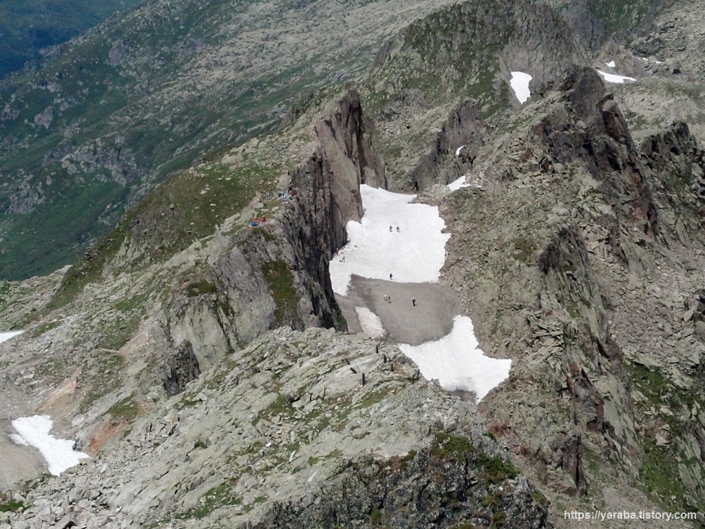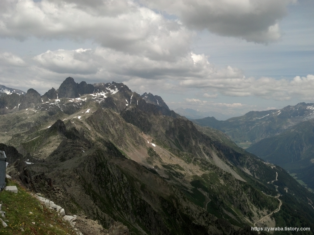 샤모니 반대 방향 쪽의 모습입니다. 고도가 높다 보니 대부분의 눈이 녹기는 했지만 곳곳에 잔설이 남아 있습니다.