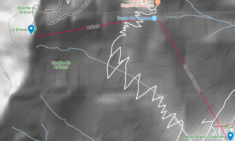 2,525미터 르 브레방(Le Brévent)에 도착했습니다. 원래의 TMB 경로도 이곳을 지나갑니다. 역 시계 방향으로 TMB를 도는 경우 12일째 마지막 코스로 이곳을 거쳐서 레 우슈로 가게 됩니다.