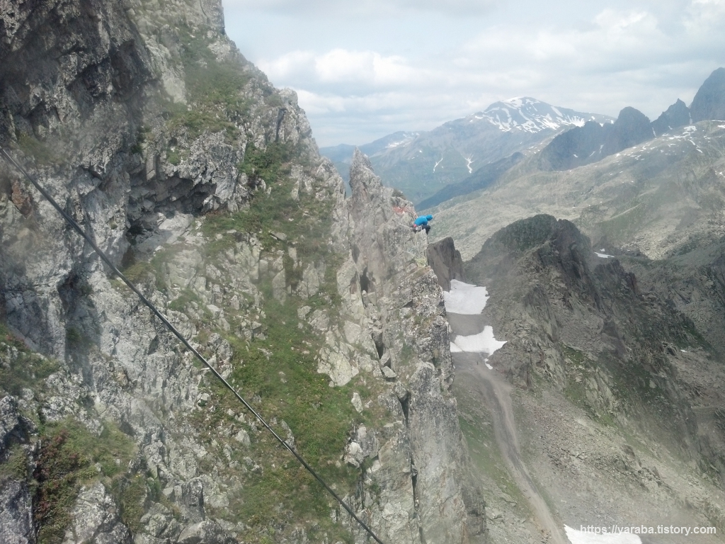 케이블카가 르 브레방 근처에 이르자 저희는 자연스레 아아! 하며 탄성을 내뱉게 하는 광경을 만나게 됩니다. 거의 90도에 가까운 깎아지른 절벽도 절벽이지만 그 절벽에 사람들이 매달려 있었습니다. 인공 구조물을 오르는 스포츠클라이밍과는 다른 세계이죠. 불같은 성정에 당장이라도 뛰어내려 가 도전해 보고 싶은 마음이 심장을 자극을 자극합니다. 물론 몸이 준비되어 있지 않은 문제가 있지요.