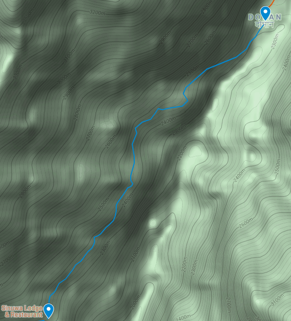 노천 온천이 있는 지누단다(Jinu Danda)를 거쳐 톨카(Tolka, 1,700m)까지 걷는 10.8Km의 여정입니다.
