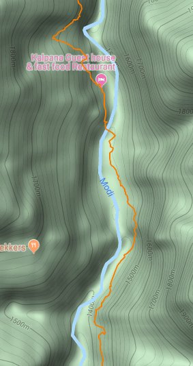 모디강(Modi)을 건너는 다리(New bridge)를 지나면 란드룩(Landruk)까지 평탄한 길과 완만한 오르막이 이어집니다.