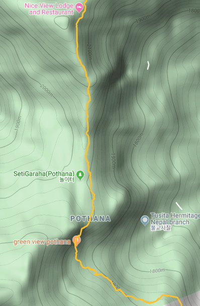숙소를 잡을때 경로가 산을 오를 때 왔었던 콤롱 및 킴롱 방향으로 가지 않도록 주의해야 합니다. 촘롱을 지나서 숙소를 잡는다면 지누단다(Jinu Danda) 방향으로 가도록 해야 합니다.