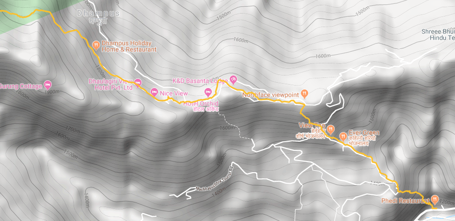 포타나에서 담푸스(Dhampus)까지는 완만한 길이 이어지다가 페디(Phedi) 직전에서 500여 미터의 고도를 급격히 낮추며 가파른 계단을 내려가면 이번 ABC 걷기는 모두 끝이 납니다.