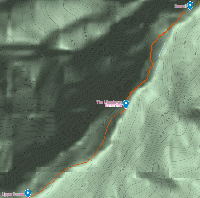히말라야까지 1.91Km, 데우랄리까지 1.95Km 오르막을 오르면 3,230미터 데우랄리(Deurali)에서 생애 처음으로 3천 미터가 넘는 곳에서 숙박을 하게 됩니다. 히말라야 이후 급한 오르막에서 무리하지 않도록 천천히 걷는 것에 주의합니다. TMB 걷기에서 2,750m 로베르 블랑 산장(Refuge Robert Blanc)에서 하룻밤을 보낸 경험에 비추어 보면 큰 무리가 없을 것으로 예상하지만 무엇보다 숙소가 문제없이 잡혔으면 하는 바람입니다. 데우랄리의 숙소 정보는 아래와 같습니다.