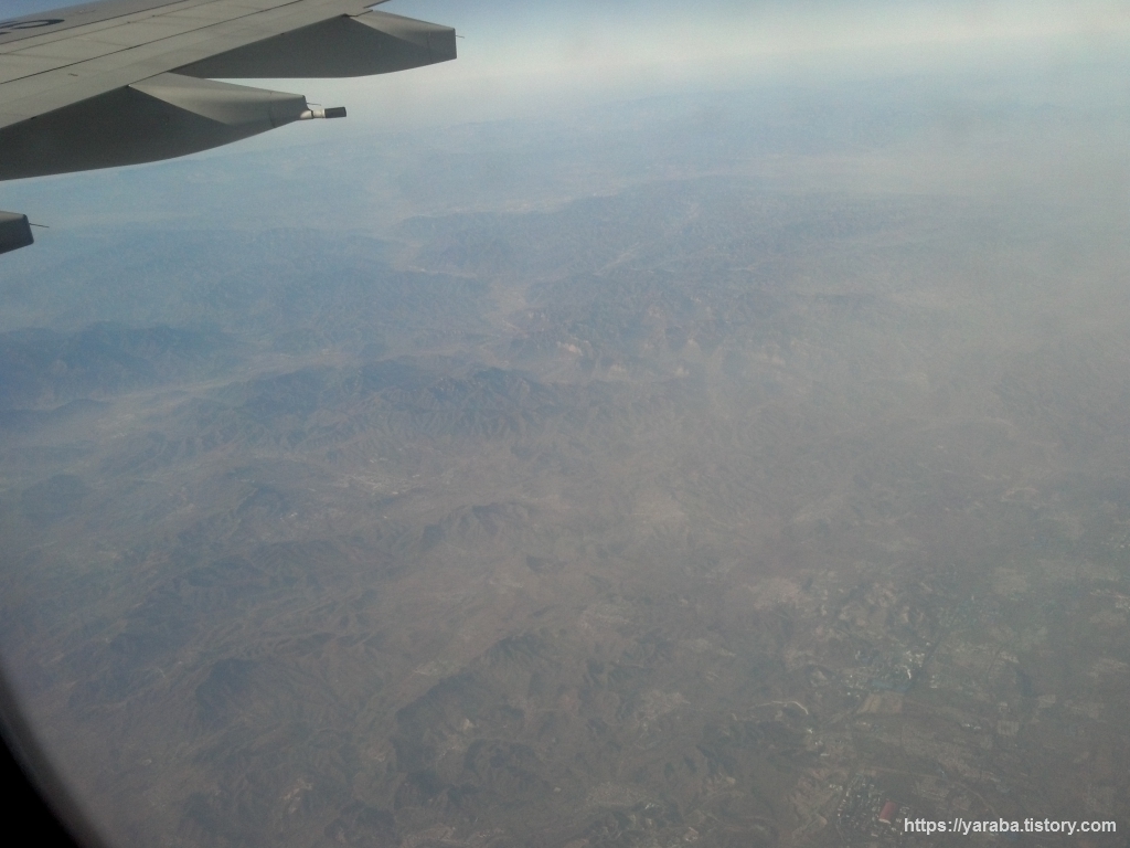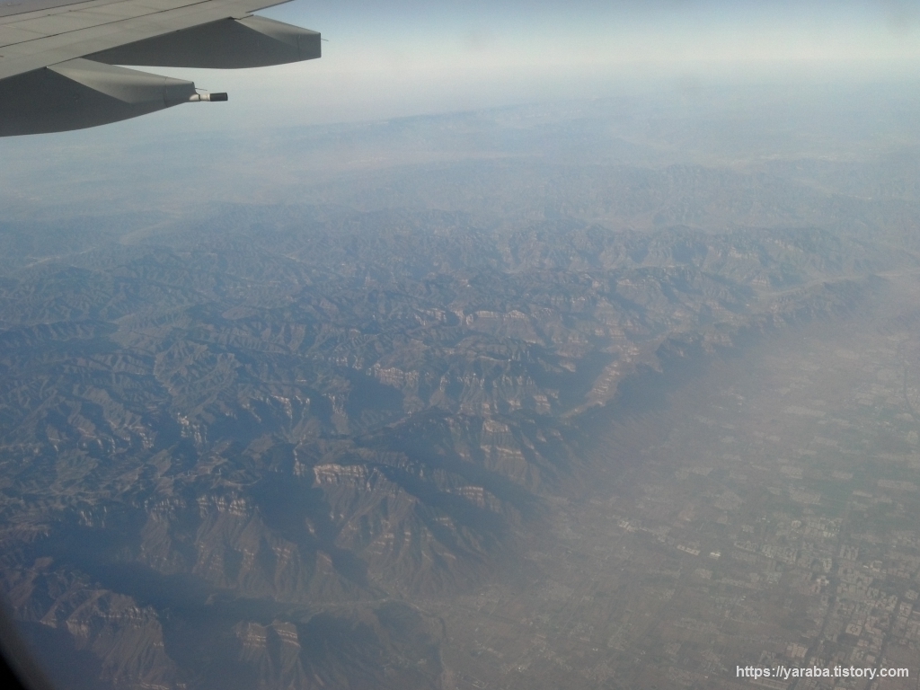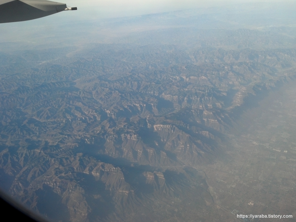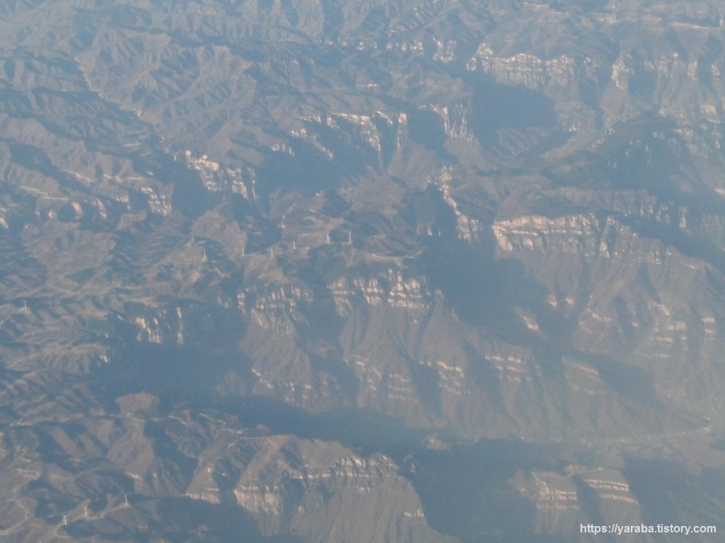 청두행 비행기가 산악지대에 접어드니 독특한 지형의 산맥이 눈에 들어 왔습니다.