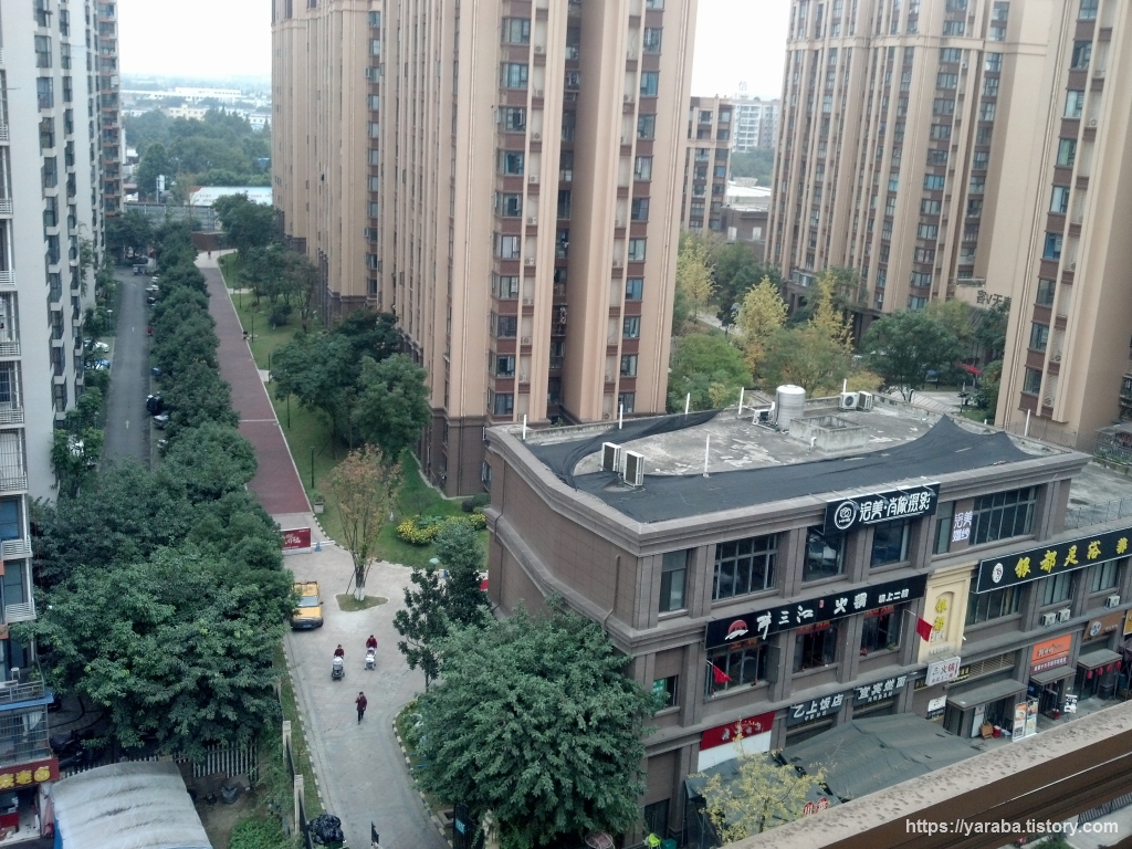 호텔에서 바라본 주변 풍경입니다. 호텔 바로 앞에는 고층 아파트가 있어서 아침, 저녁으로 산책 나오는 사람들, 이른 아침 노점에서 아침을 해결하고 출근하는 사람들의 모습을 볼 수 있었습니다.