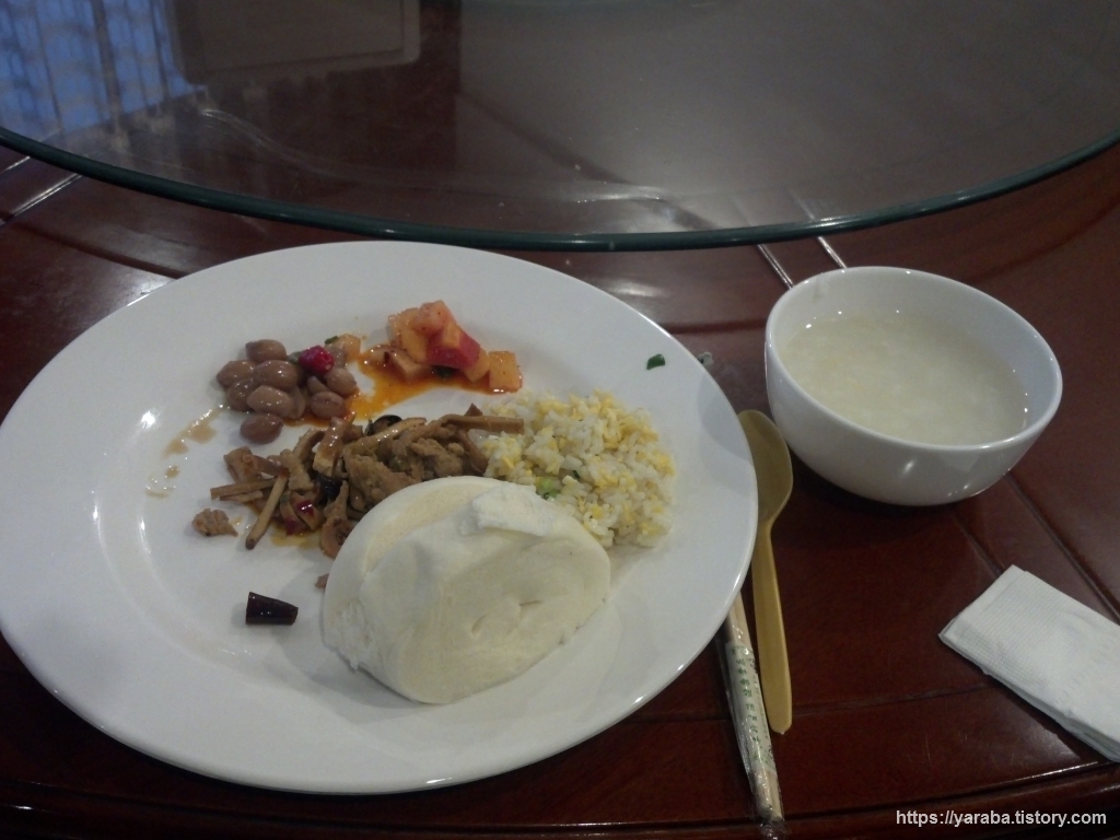 조식을 먹을 수 있는 식당은 호텔 꼭대기층에 있었는데 단출한 중국식 뷔페식으로 처음에는 입맛에 맞을까? 하는 염려와 단출한 메뉴가 뭐 이래? 하는 느낌이었지만, 의외로 입맛에도 잘 맞고 맛있게 먹었습니다.