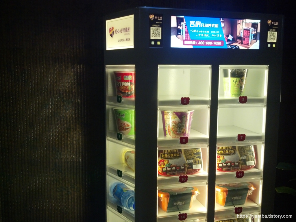 로비나 복도에 있는 판매 상품의 모습입니다. 자판기는 아니고 상품을 보고 전화로 주문하는 방식인 모양이었습니다.