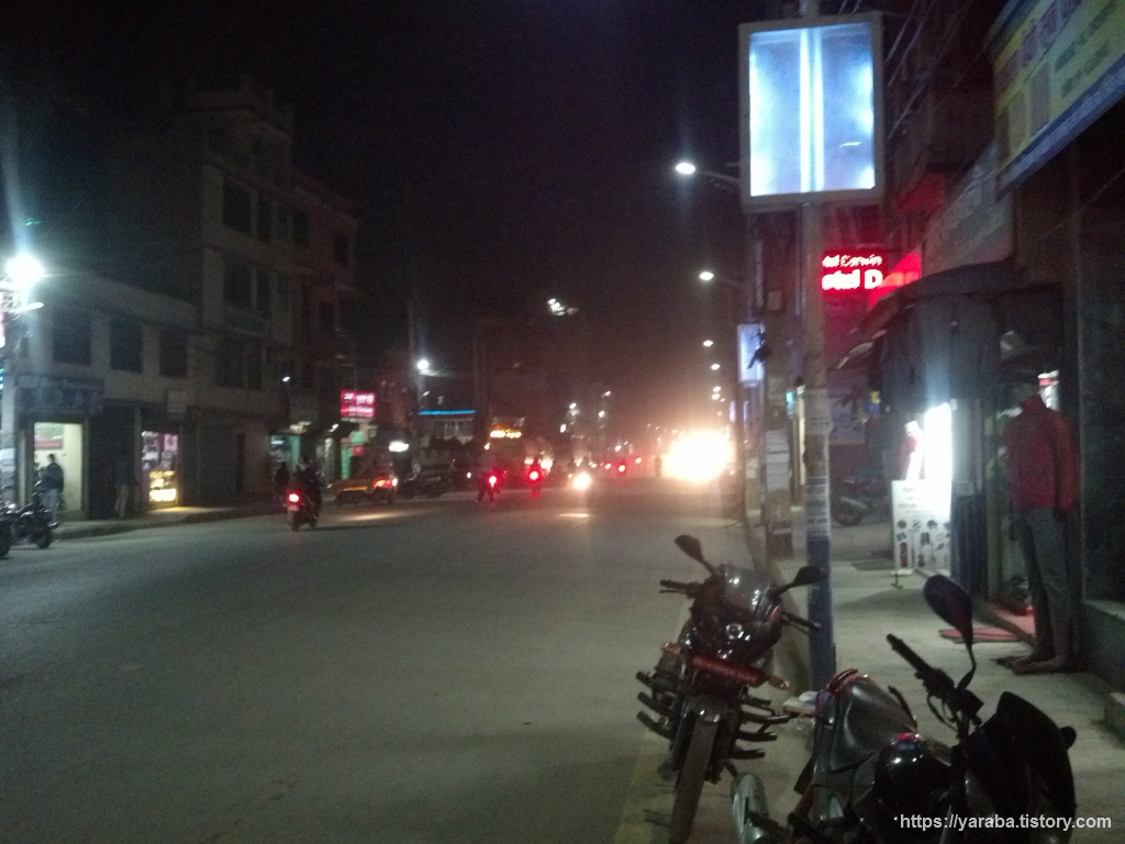 시내 중심지에서 조금만 벗어나도 길은 이내 컴컴해집니다. 사람이 다니는 인도가 있는 곳이라면 우리나라에서는 시골조차 가로등이 있지만 이곳은 그렇지 않았습니다. 저녁 6시가 조금 넘는 시간인데도 깊은 밤처럼 느껴집니다. 뿌연 흙먼지와 어두운 인도를 걸어서 야간 버스가 출발하는 바트 바트니(Bhat Bhateni) 슈퍼까지 묵묵히 걷습니다.