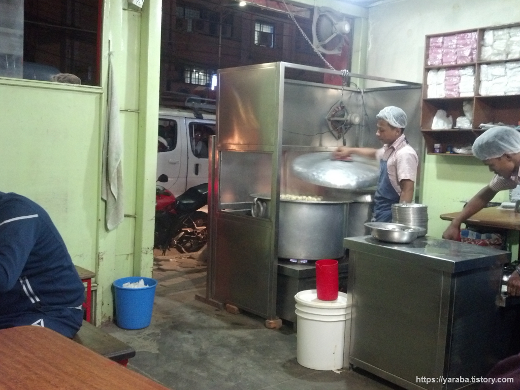 모모를 찌고 서빙하는 직원들이 따로 있고 선불로 돈만 받는 사람이 따로 있는 방식이었습니다. 가격표와 메뉴는 단순해서 한 접시에 100루피, 반 접시에 50 루피 하는 방식이었습니다. 고수 향을 별로 좋아하지 않는 저의 경우에도 먹을만했습니다.