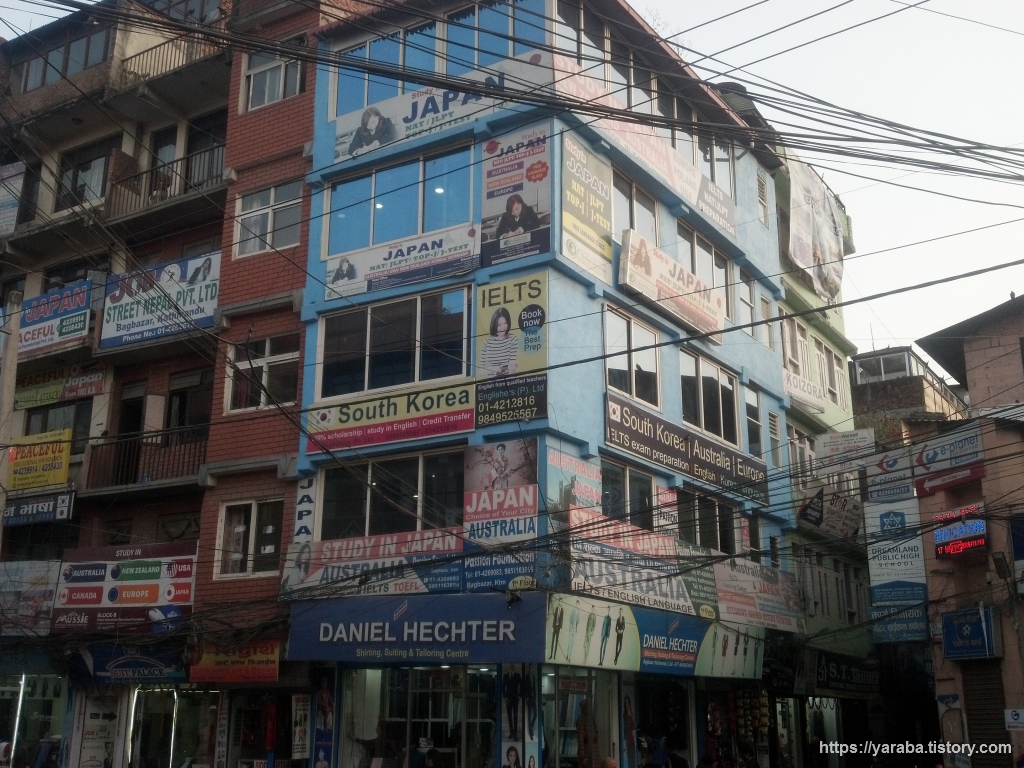 배그 바자 거리(Bag Bazar Sadak)에 들어서니 각종 상점과 어학원이 많은 대표적인 거리답게 서점과 어학원이 많았습니다. 한국어 어학원도 보입니다.