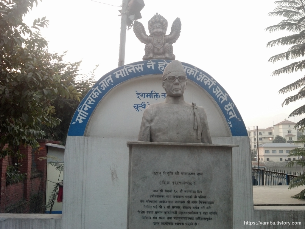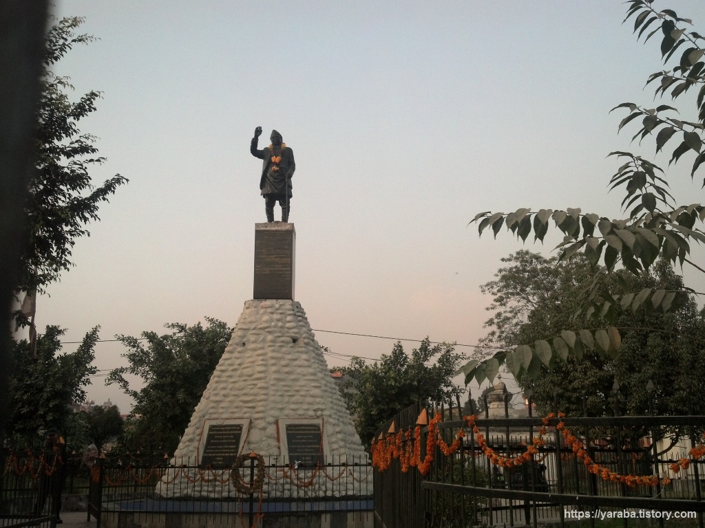 라트나 공원 건너편에는 크지 않은 가네쉬 맨 싱 추모 공원(Ganesh Man Singh Memorial Park)에 있는데 공원에 있는 가네쉬 맨 싱의 동상입니다. 1990년 민주화 시위 당시 네팔의회당의 지도자였고 네팔 민주주의의 아버지라 불리는 인물입니다. 네팔의 험난한 민주화 과정에서 돋보이는 인물 중 한 명이라 합니다.