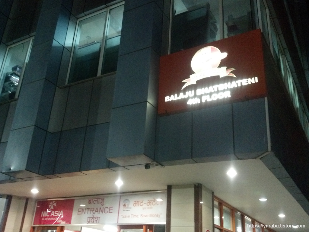 자가담바 야간 버스(http://pkrjagadamba.com/)는 발라주 촉에 위치한 바트 바트니(Bhat Bhateni) 슈퍼 길 건너편에서 출발합니다. 슈퍼라고 하지만 거의 대형마트 수준이었습니다. 두 시간가량 남은 시간을 저희는 4층에 있는 이탈리안 레스토랑에서 식사를 하면서 휴식을 취하고 다음 여정을 준비하는 시간으로 삼았습니다.