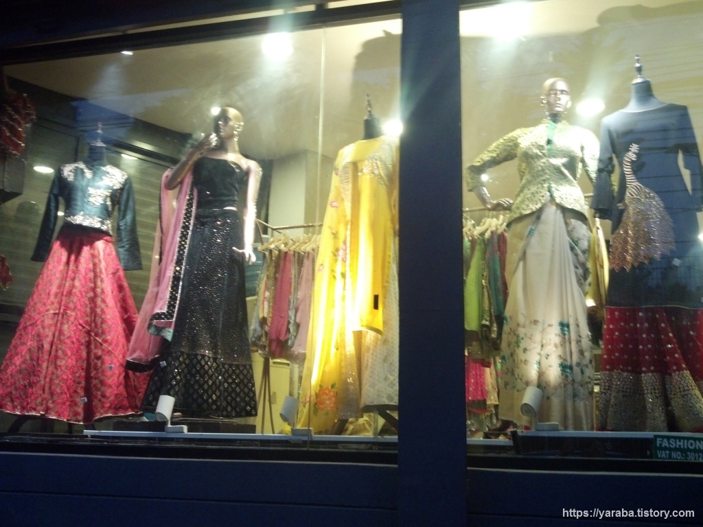 시장통의 옷가게가 아니라 고급진 패션을 선보이고 있는 의상실을 지나가는데 잠시 발길을 멈추게 했습니다. 네팔 여성들이 입는 전통 드레스 네와르(Newar)도 아니고 전통 의상과 서양식 의상이 섞인 부유층을 위한 옷들이 아닌가 싶었습니다. 짧은 작품 감상 시간이었습니다.