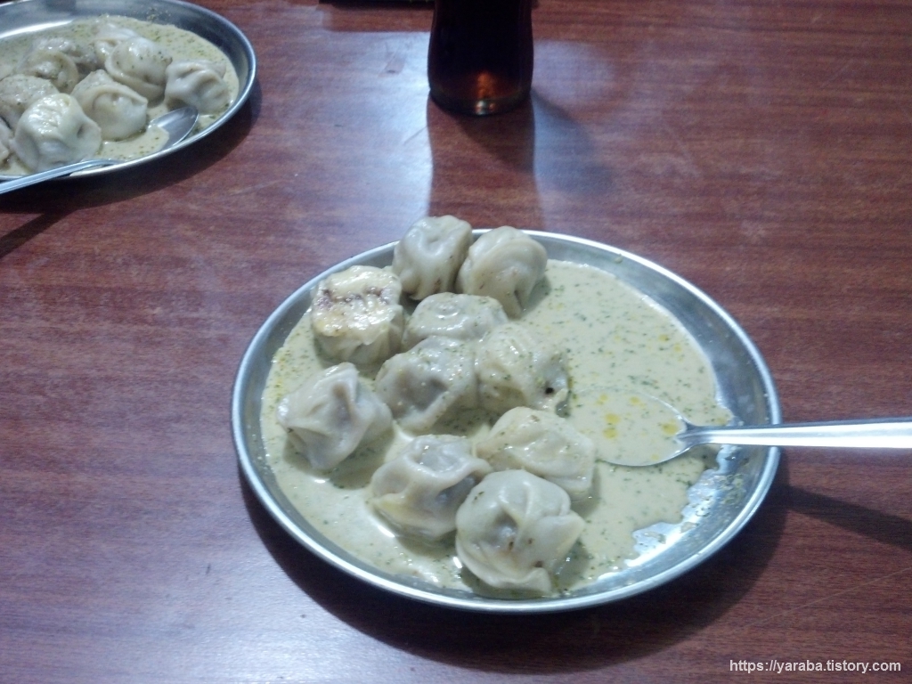가는 길에 현지인들에 유명하고 맛있고 저렴하다는 모모집(New Everest Momo Center)을 들렀는데 옆지기와 저 모두 처음 먹어보는 네팔 음식이었지만 먹을만했습니다. 모모 두 접시와 콜라 한병해서 250 루피를 선불했습니다. 만두처럼 생긴 것에 깨 국물같은 소스를 주전자로 부어 주는데 모모 속은 고기도 씹히고 야채도 있어서 나름 먹을만 했습니다.