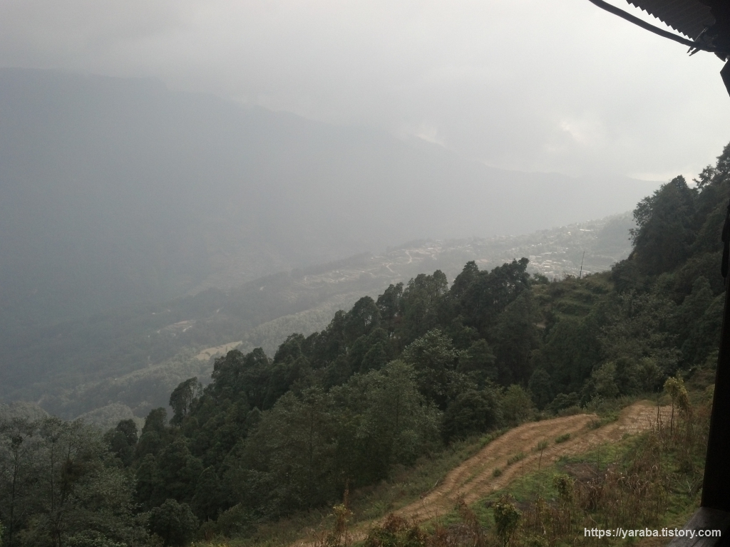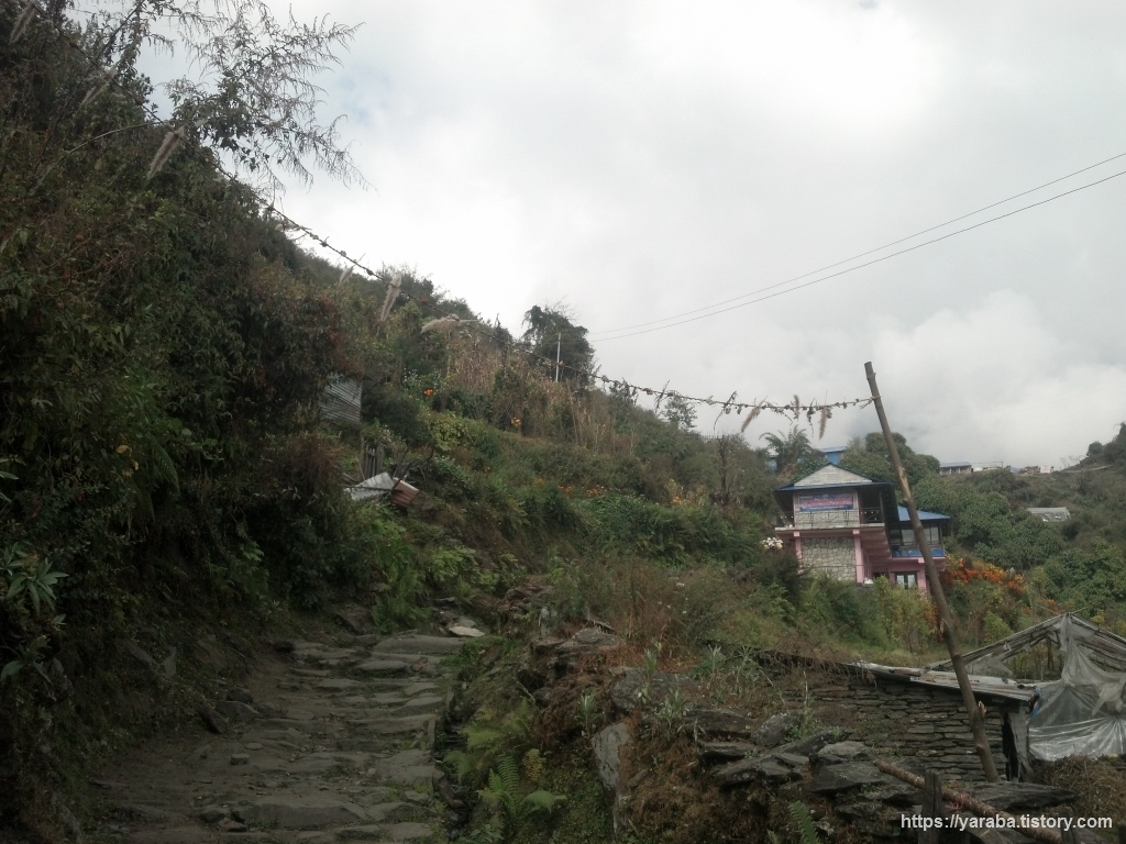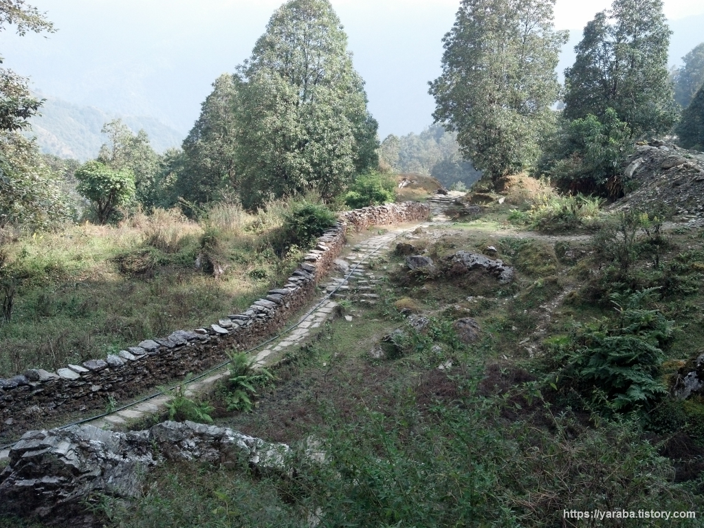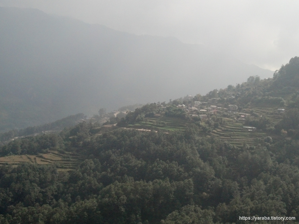 묵묵히 걷다 보니 상당한 높이 까지 올라왔나 봅니다. 반대편으로 멀리 간드룩 마을이 한눈에 들어옵니다.