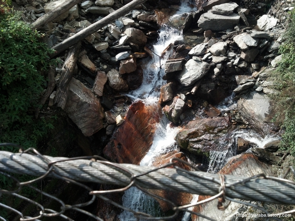 다리 난간에서 조심스레 스마트폰을 꺼내서 계곡의 모습을 담아 봅니다. 지금은 그나마 평안해 보이지만 우기에는 이곳도 무섭게 변하겠지요?