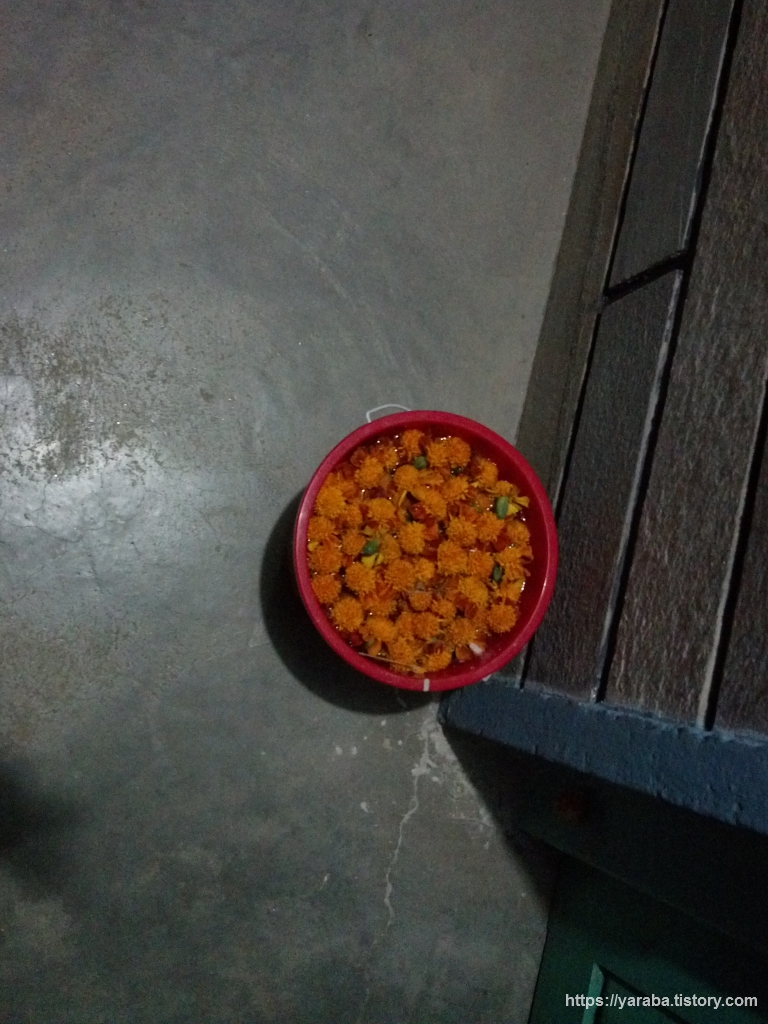 김치찌개가 나오기를 기다리면서 숙소 바깥을 잠시 거니는데 숙소 주변으로 꽃들도 심어 놓고 물통에 꽃을 띄워 놓는등 주인장 나름의 신앙의 표현을 볼 수 있었습니다. 김치찌개는 자신들이 직접 만들었다는 김치에 참치를 넣은 것으로 국그릇에 찌개를 담고 넉넉한 양의 밥과 같이 내어 왔습니다. 쌀이 이곳 쌀이라 날아다녀서 그렇지, 나름 맛있게 먹었습니다. 가져간 볶음 고추장으로 밥도 비벼 먹고, 이틀간의 긴 여행의 피로를 풀어 줄 만한 식사였습니다.