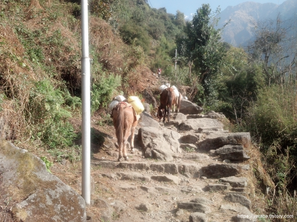 쿨디하르(Khuldighar, 2,540m)를 지나면 뱀부(2,310m)까지는 내리막 길이 이어집니다.