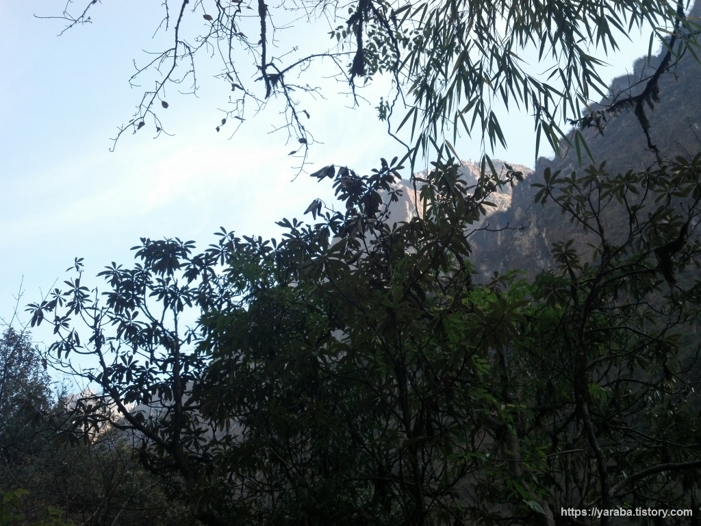 오전 9시를 바라보는 시각, 산봉우리의 여전한 산 그림자와 정글과 같은 숲의 모습은 이곳이 얼마나 깊은 계곡 인가를 짐작케 합니다.