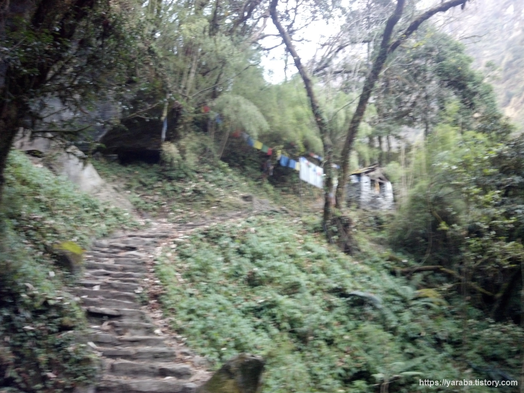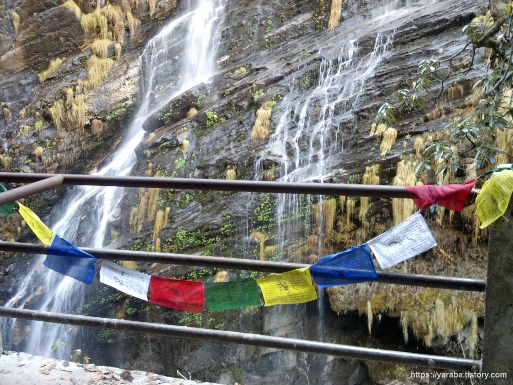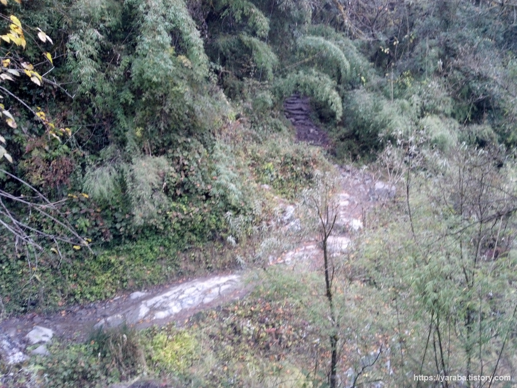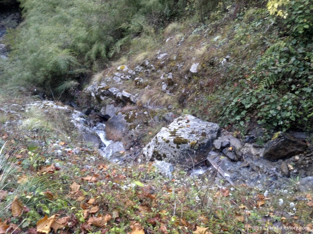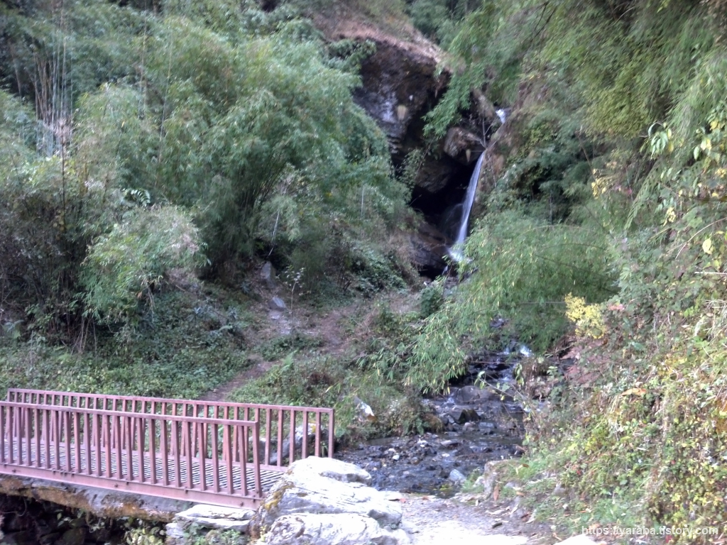 뱀부에서 도반과 히말라야를 거쳐 데우랄리로 가는 길은 수량이 풍부한 지역답게 산 곳곳에서 물이 흘러내리고 있었습니다. 곳곳이 폭포입니다.