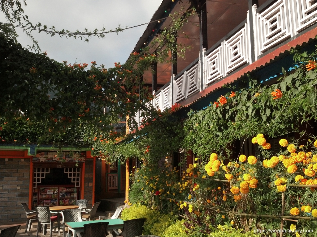 꽃으로 장식해 놓은 산장의 모습이 참 아름답습니다. 아무리 위도가 낮고 해발 고도도 낮은 지역이기는 하지만 MBC와 ABC 산장에 눈이 내리는 한 겨울에도 이곳은 여전히 꽃을 피울까? 하는 호기심이 들었습니다.