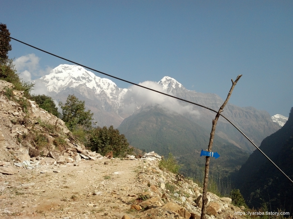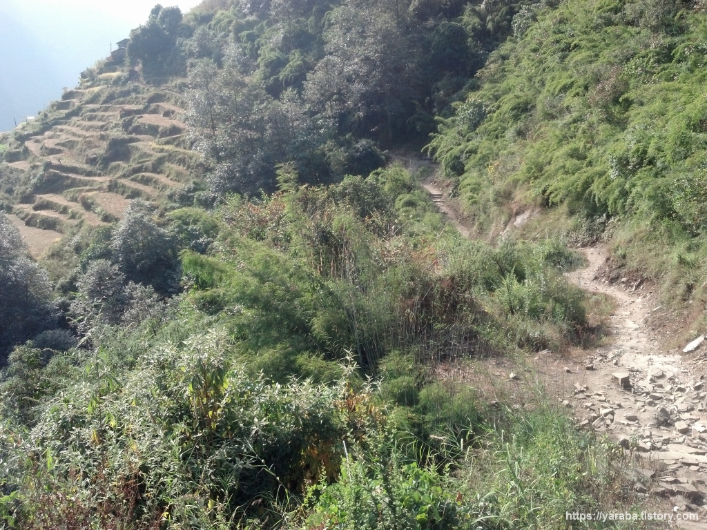 하는 수 없이 일단 계속 걸으면서 이후 여정을 어떻게 할지 결정하기로 했습니다. 간드룩에서 바로 포카라로 나가면 톨카와 페디까지 가는 여정이 없어지면서 무엇을 하며 시간을 보낼지도 난감했습니다. 몸이야 편하겠지만 관광 목적으로 이곳을 찾은 것도 아니고 관련 계획도 세우지 않았으니 막막했습니다. 그래도 포카라까지 가면 어떻게 방법이 생기겠지 하는 마음과 포카라 숙소에서 온수로 샤워도 하고 편안하게 하루 이틀을 보낼 상상도 하면서 계속 걸었습니다.