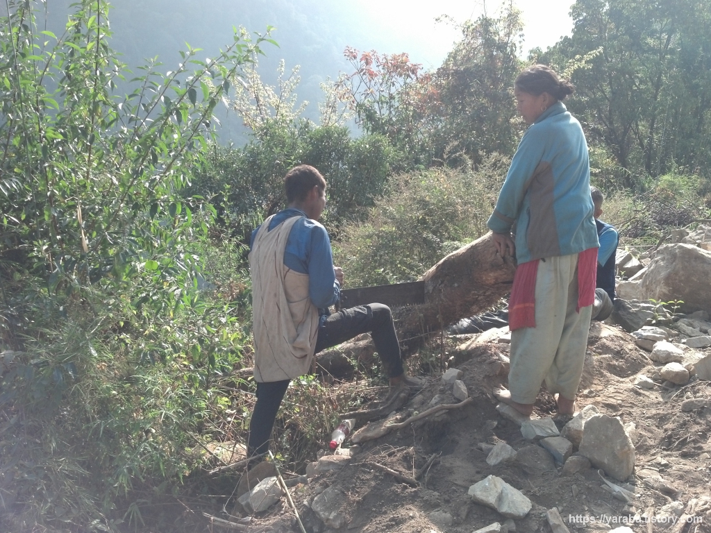 란드룩 가는 길을 찾아 걷는 길 도중에는 장작을 위해서 나무를 자르고 있는 한 식구의 모습도 만날 수 있었습니다. 아버지와 아들이 둘이서 양쪽에서 톱을 잡고 나무를 자르고 있는 모습은 저에게는 처음 보는 광경이었습니다. 우리나라의 탕개톱이 두 사람이 양쪽에서 톱을 잡고 자르는 도구인데 우리나라의 현대 시장에서는 거의 볼 수 없습니다. 요즘은 저럴 필요가 있다면 전기톱이나 엔진톱을 사용하기 때문일 것입니다. 외국에서는 여전히 Two Person Saw나 Cross Cut Saw라는 이름으로 판매하고 있었습니다. 아무튼 란드룩 가는 길을 찾아 걷는 길은 지금까지 왔던 길을 다시 거슬러 올라가기 때문에 안나푸르나 남봉을 바라보면서 걷는 길입니다.