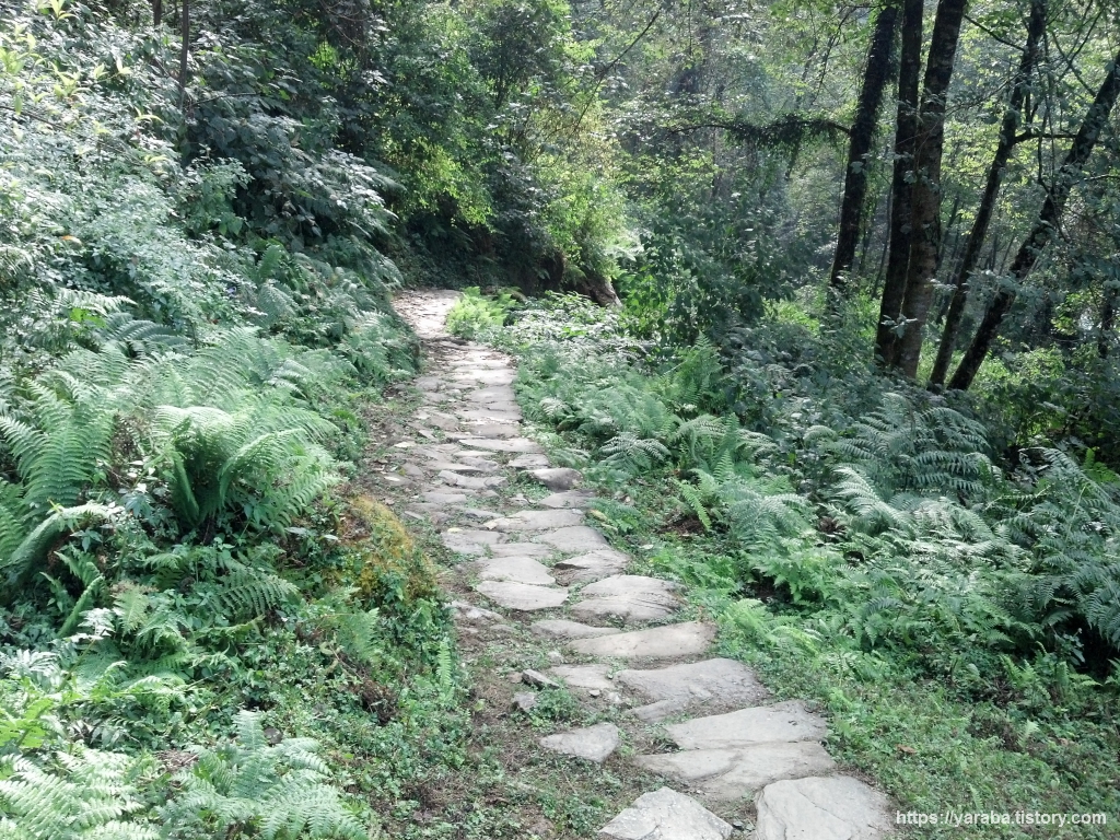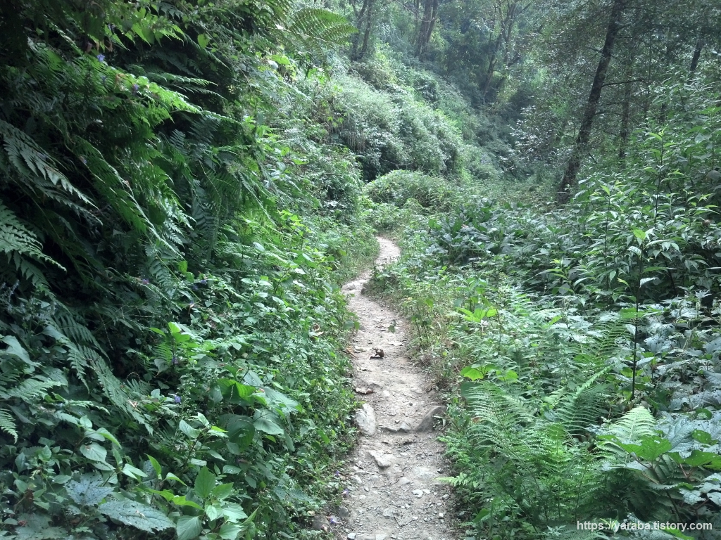 원시림 같은 숲길이 이어집니다. 이곳이 일반적인 야산의 숲길 이었다면 길의 흔적도 찾기 어려울 것이지만 현지인과 트래커들의 수많은 발걸음이 이어지다 보니 란드룩 가는 길은 숲은 깊지만 편안한 길이 이어집니다.