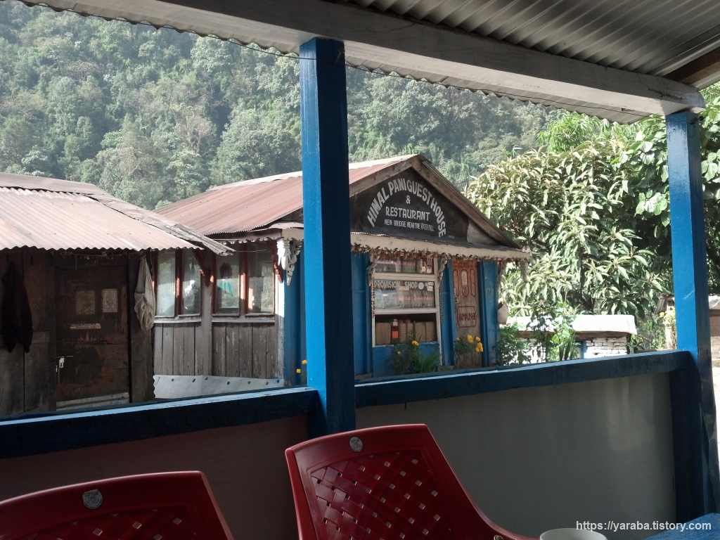 출렁다리를 건너면 바로 만나게 되는 히말 파니 게스트 하우스(Himal Pani Guest House)에서 쉬어 가기로 했습니다. 지누단다 출렁다리에서 이곳까지 한 시간이면 올 길을 두 시간이나 헤맨 것입니다. 그래도 이만한 것이 다행이었습니다.