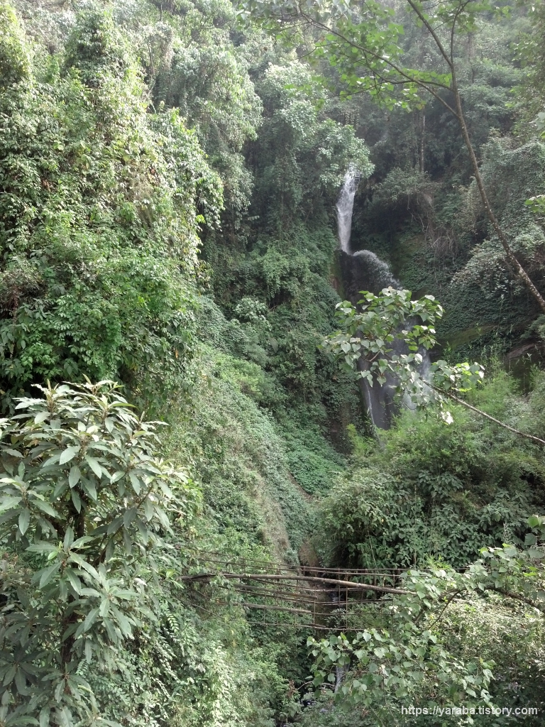 폭포 한쪽으로는 이전에 사용했던 다리의 모습도 남아 있습니다. 세월이 흐르면서 다리의 흔적 조차 나무들이 삼키고 있는 모습입니다.