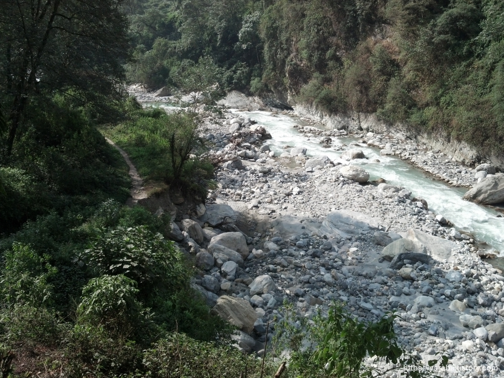 히말 파니를 떠나 란드룩으로 가는 길 초반은 모디강을 따라 오르락내리락하는 길입니다. 때로는 강가에 직접 닿을 정도로 계곡 가까이로 경로가 이어집니다.