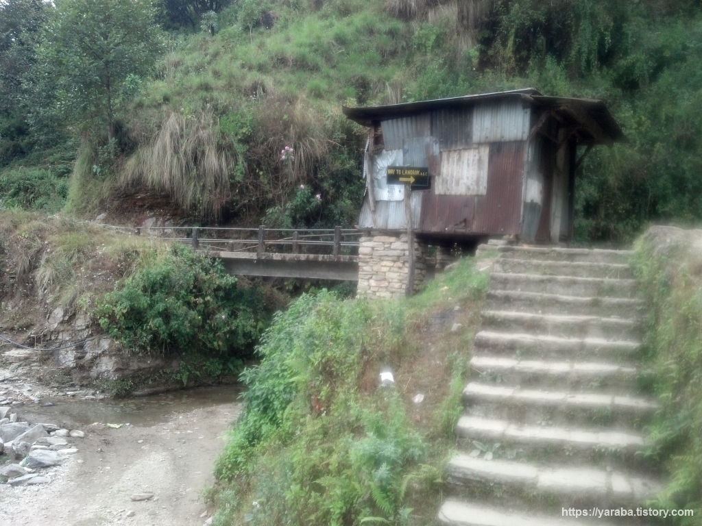 란드룩 직전 계곡을 건너는 다리는 출렁다리가 아니라 트러스 인도교였습니다. 트러스교는 한강 철교처럼 삼각형 형태로 무게를 지탱하게 만든 교량을 말합니다. 기차가 다니는 트러스교는 여럿 보았지만 사람과 당나귀 전용의 트러스교는 처음입니다. 그리고 ABC 트레킹 경로에서 대부분의 다리는 출렁다리이지만 트러스교는 이곳이 유일했습니다.