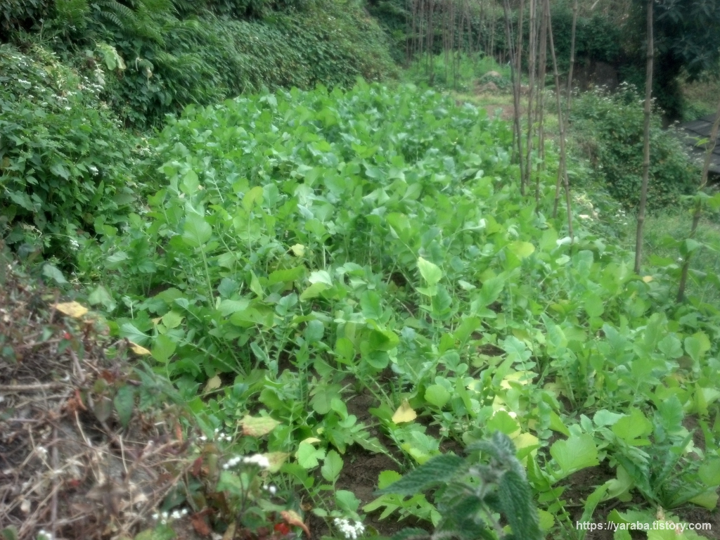 텃밭에 눈에 익은 작물이 자라고 있었습니다. 열무나 총각무로 보이는데 한국에서 씨를 가져간 것인지, 아니면 이곳 사람들도 즐겨 먹는 채소인지 모를 일입니다.