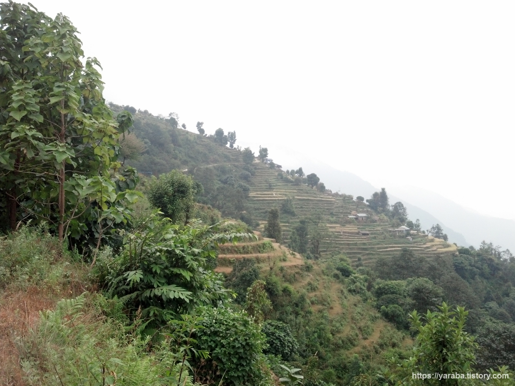 이제 란드룩 마을을 지나 산등성이 따라 이어진 큰길로 톨카를 향해 걷습니다. 슈퍼뷰라는 산장의 이름답게 저 산장에서는 란드룩과 간드룩을 비롯해서 여러 곳이 한눈에 들어오는 전망을 가질 것 같습니다. 산장 이름에 뷰(View)가 들어간 것이 참 많습니다.