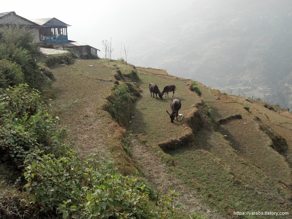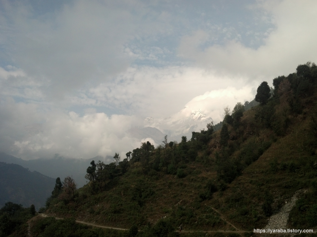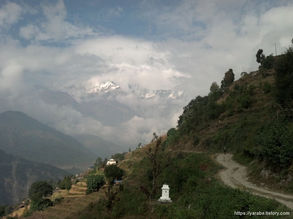 톨카(Tolka) 마을이 눈에 들어오기 시작했습니다. 뒤를 돌아보면 안나푸르나 쪽의 광경도 조금씩 가려집니다.