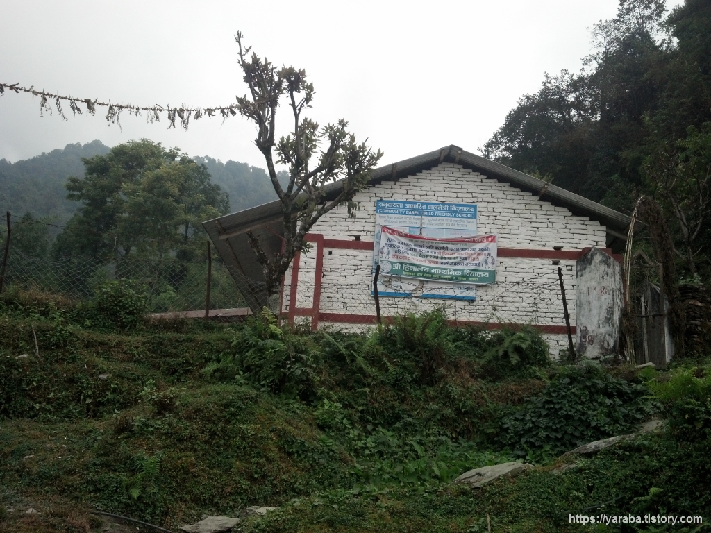 톨카 마을을 통과해서 언덕을 올라오면 다시 큰길과 합류합니다. 큰길과 합류하는 곳에는 히말라야 중학교(Shree Himalaya Secondary School)가 있었습니다. 네팔은 초등 7년, 중등 3년, 고등 2년의 학제이기는 하지만 사립학교 중심으로 초등 교육조차 받지 못하는 아이들이 여전하다고 합니다. 많은 NGO들이 초등 교육을 돕고는 있지만 결국 나라가 부유해져야 최소한의 교육을 받지 못하는 아이들이 줄어들 것이고 연속성 있는 지속 가능한 교육이 될 것입니다.