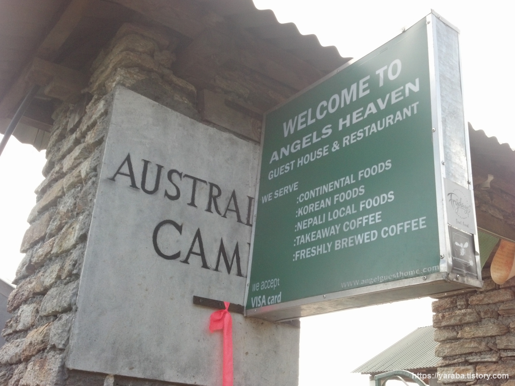오스트레일리안 캠프(Australian Camp, 2,060m)에 도착했습니다. 캠프 방향으로 계속 가면 많은 사람들이 ABC 트레킹을 시작하는 칸데(Kande)에 이를 수 있습니다.