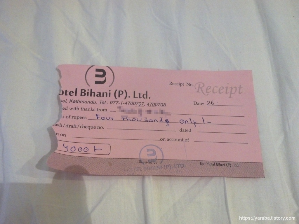 호텔 비하니(Hotel Bihani)는 근처 다른 호텔에 비하면 결코 싼 가격은 아니었지만 내부 시설만은 만족할만한 수준이었다. TV와 무료 와이파이를 비롯해서 깔끔한 욕실과 풍부한 온수까지, 조금 비싸기는 했지만 이 가격도 한국 모텔보다는 저렴한 가격이었고 새벽 5시에 들어온 얼리 체크인이었으니 이틀을 묵은 것과 마찬가지였다. 무엇보다 산장에서의 원시생활을 접고 이제 문명 시대에 들어서는 느낌이었다.