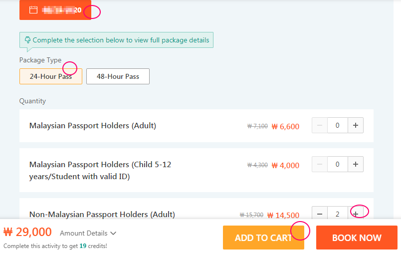 시티 투어 버스는 KL Hop-on Hop-off 버스라고 부르는데 https://www.klook.com/activity/8383-kl-hop-on-hop-off-kuala-lumpur/사이트에서 예약을 진행했다. 예약 방법은 날짜를 선택하고 하루짜리 패스를 선택하면 인원수 선택을 위한 창이 나온다. 내국인과 외국인의 가격 차이가 있으므로 "Non-Malaysian Passport Holders"에서 인원수를 선택한 다음 쇼핑 카트에 추가한다. 결제가 끝나면 이메일로 바우처가 날아오는데 바우처를 바로 사용할 수는 없고 시내에 있는 키오스크에서 정식 티켓으로 교환한 다음 사용해야 한다.