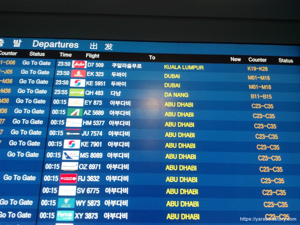 거의 자정이 다되는 시각에 출발하는 비행기인 까닭에 밤 9시가 넘는 시각에 1터미널 장기주차장에 도착했는데 항상 꽉꽉 차있던 주차타워에도 자리가 있었다. 둘이서 경차로 이동하여 장기 주차장에 차를 세워두면 고속도로도 주차비도 반값인 덕택에 공항버스를 타는 방법보다 시간과 경비면에서 모두 이득이 된다. 1일 주차 4,500원이면 공항 이동에 대한 번거로움도 줄일 수 있어서 필자의 경우 이 방법을 애용하고 있다. 차를 세워둔 장소를 스마트폰에 담아 두고 공항으로 이동한다.