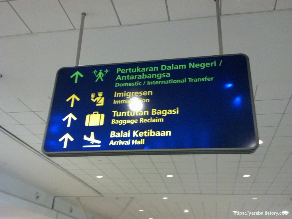 쿠알라룸푸르 시내를 다녀올 계획이므로 입국 심사장(Immigration) 표지를 따라 이동한다. 말레이시아는 관광, 가족, 친지 방문 등의 목적으로 90일 미만 단기방문하는 경우 무비자로 입국할 수 있다. 필자의 경우 입국 심사 때 여권과 환승 항공편이 표시된 E-Ticket을 보여주니 처음이냐는 질문 하나 묻고는 끝이었다. 6개월 이상의 정상적인 여권과 다시 출국한다는 것을 증명하는 E-Ticket을 보여주면 문제될 것은 없다.