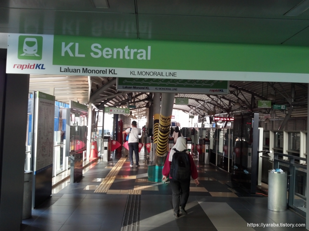 KL 센트랄 모노레일 역으로 가려면 공항 버스를 내린 곳에서 일단 기차역으로 한층 올라가야 한다.
