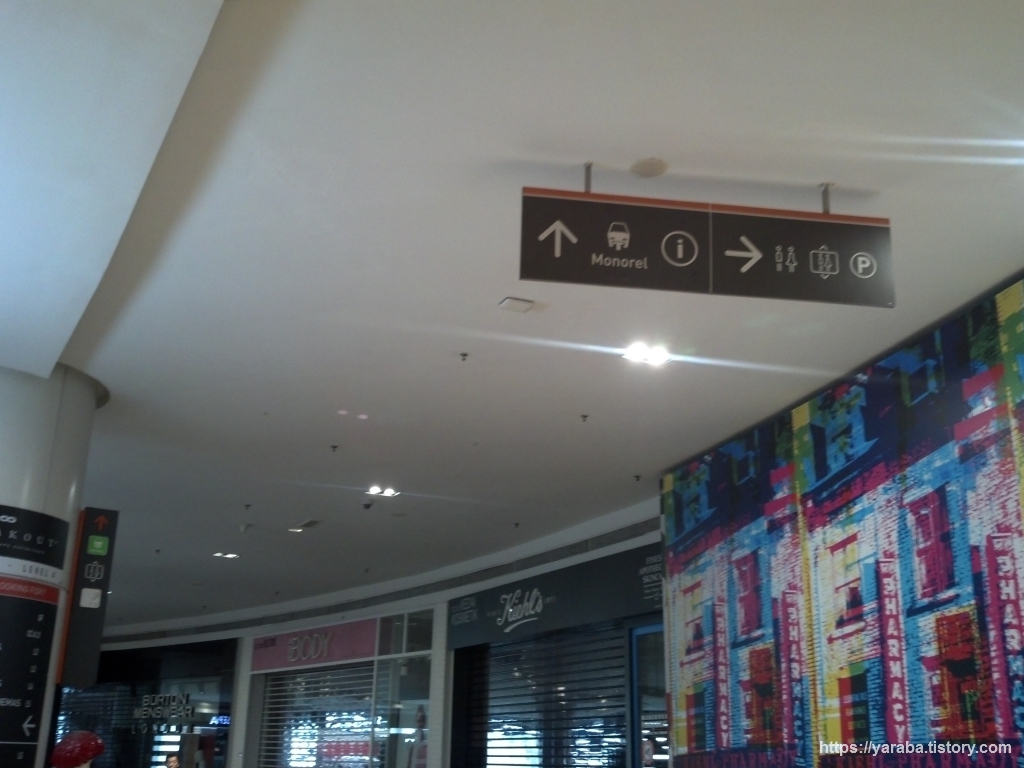 누 센트럴 쇼핑센터에 들어서면 위의 그림들과 같이 초록색의 모노레일 안내판을 따라 이동한다.