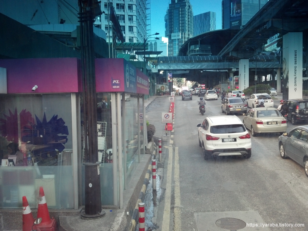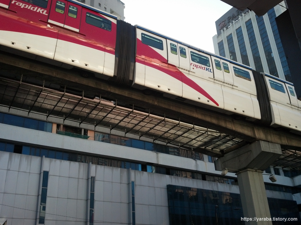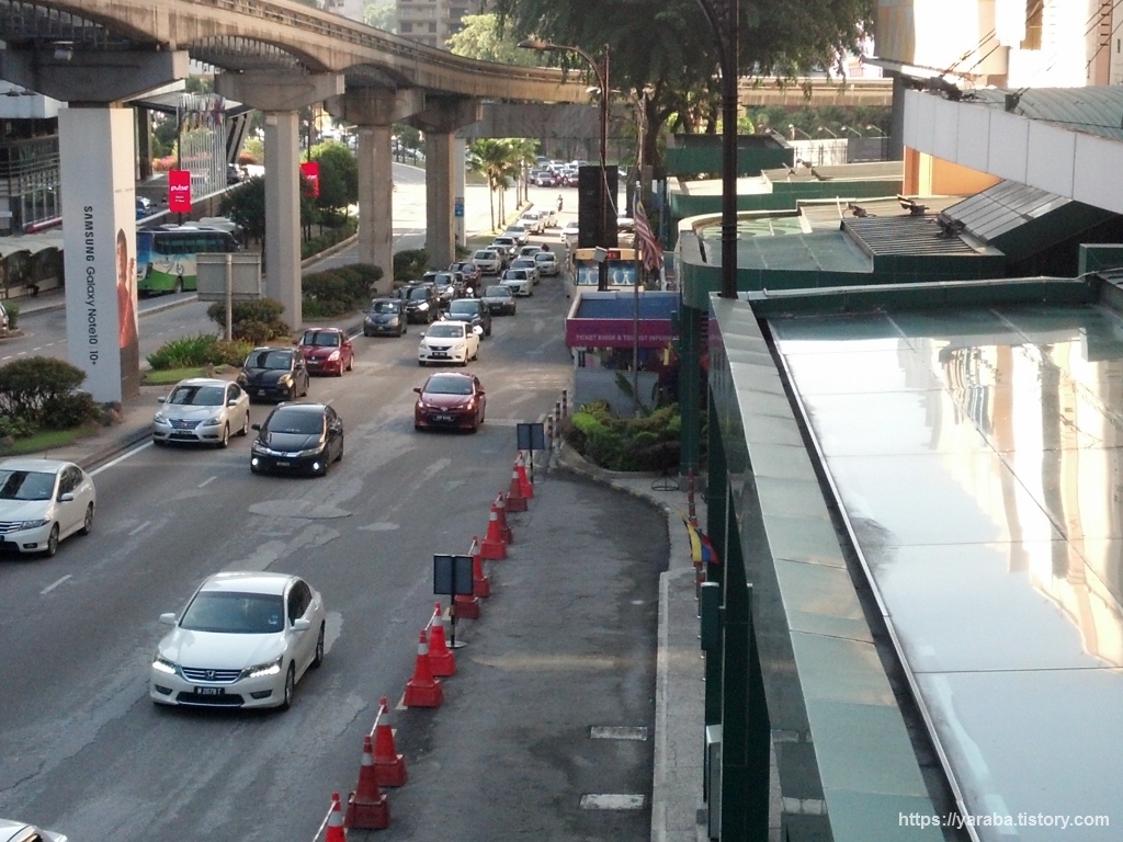시티투어 버스를 타는 곳은 KL Hop-On Hop-Off 사무실이 있는 곳인데 버스를 기다리고 있으니 바로 위로 모노레일이 지나간다. 멀리 보이는 곳이 우리가 내린 부킷빈탕 모노레일 역이다.